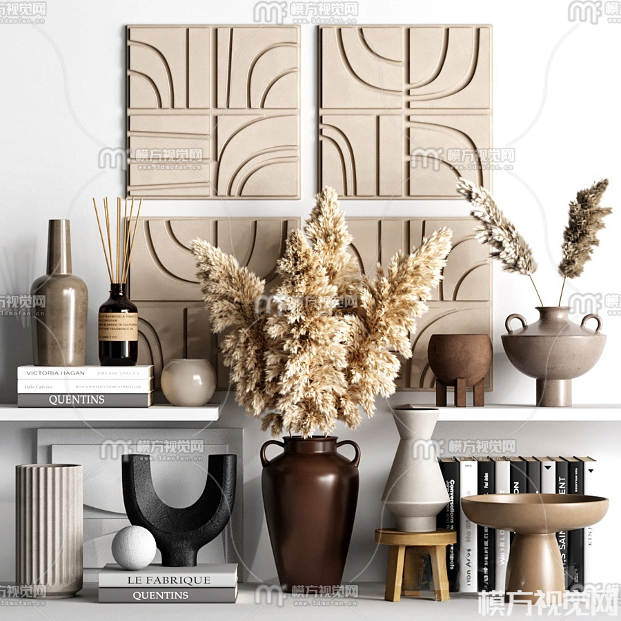 现代花瓶陶罐书籍摆件3D模型(ID:0017882)