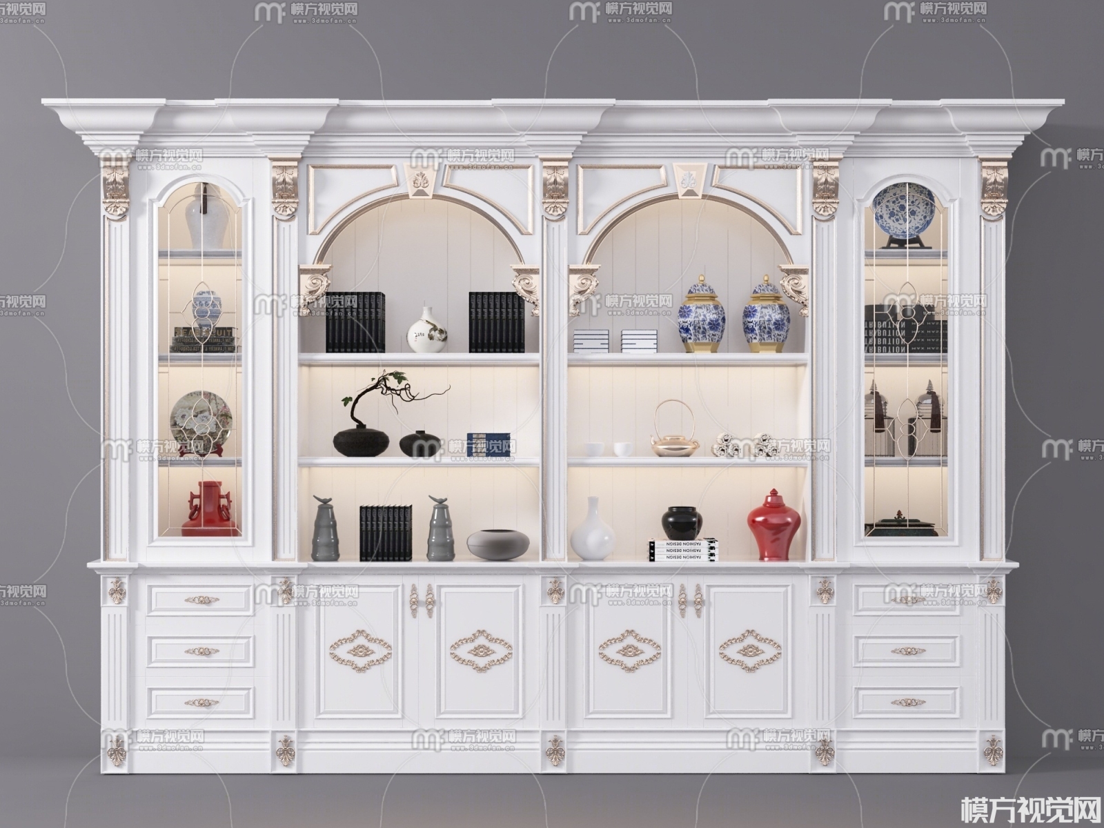 简欧书柜3D模型(ID:0001790)