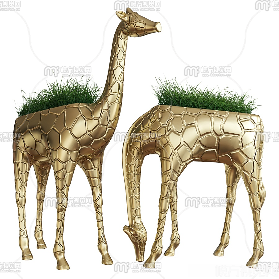 现代绿植长颈鹿盆栽3D模型(ID:0017910)
