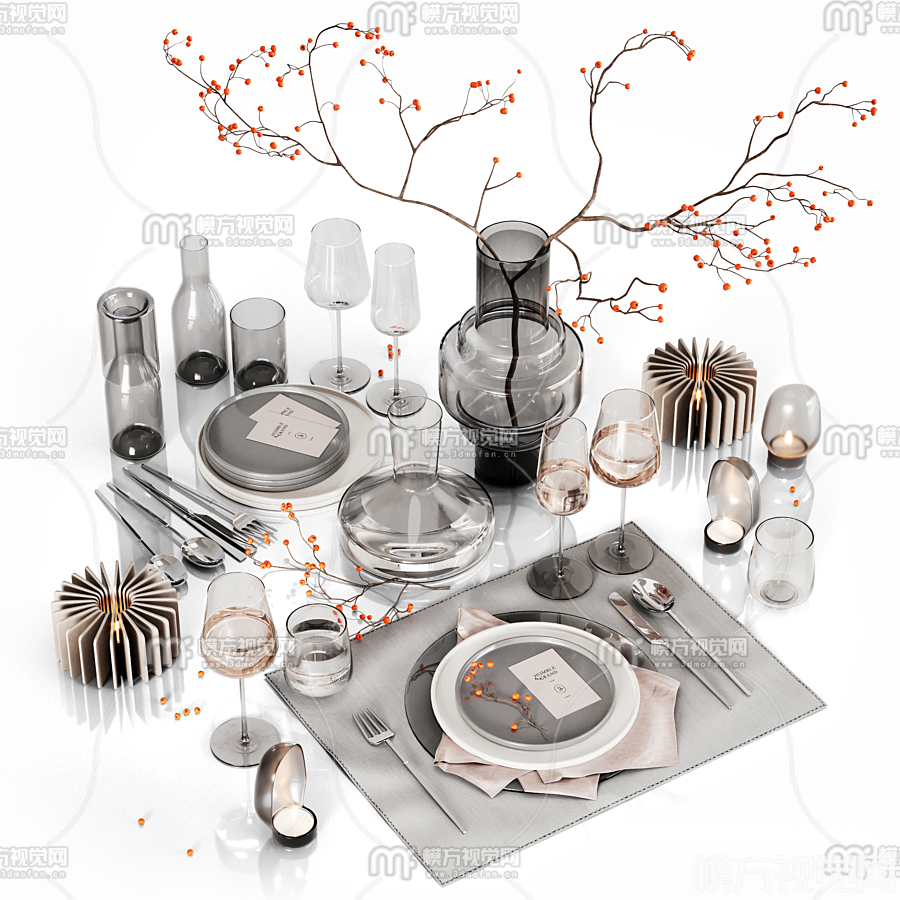 现代酒杯花瓶餐具3D模型(ID:0017913)
