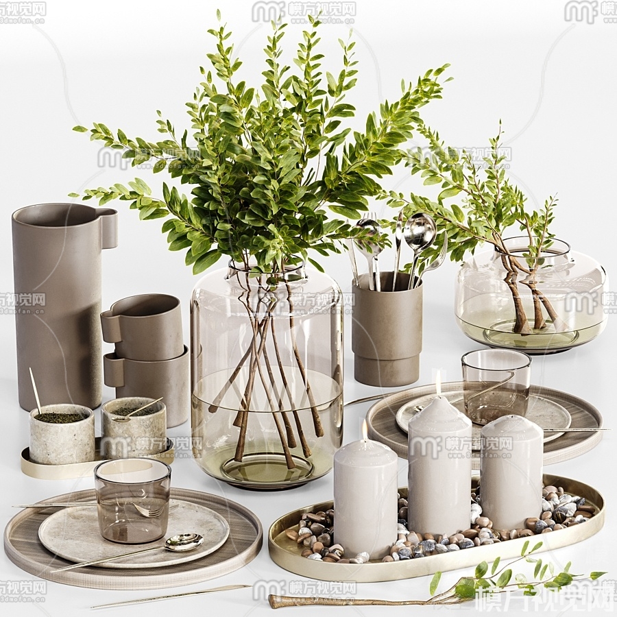 现代绿植花瓶烛台灯水杯摆件3D模型(ID:0017927)