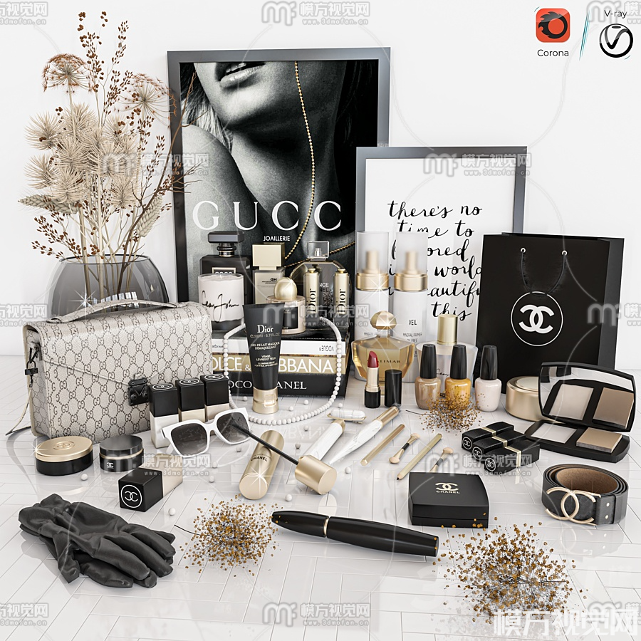 现代时尚女包化妆品3D模型(ID:0017930)