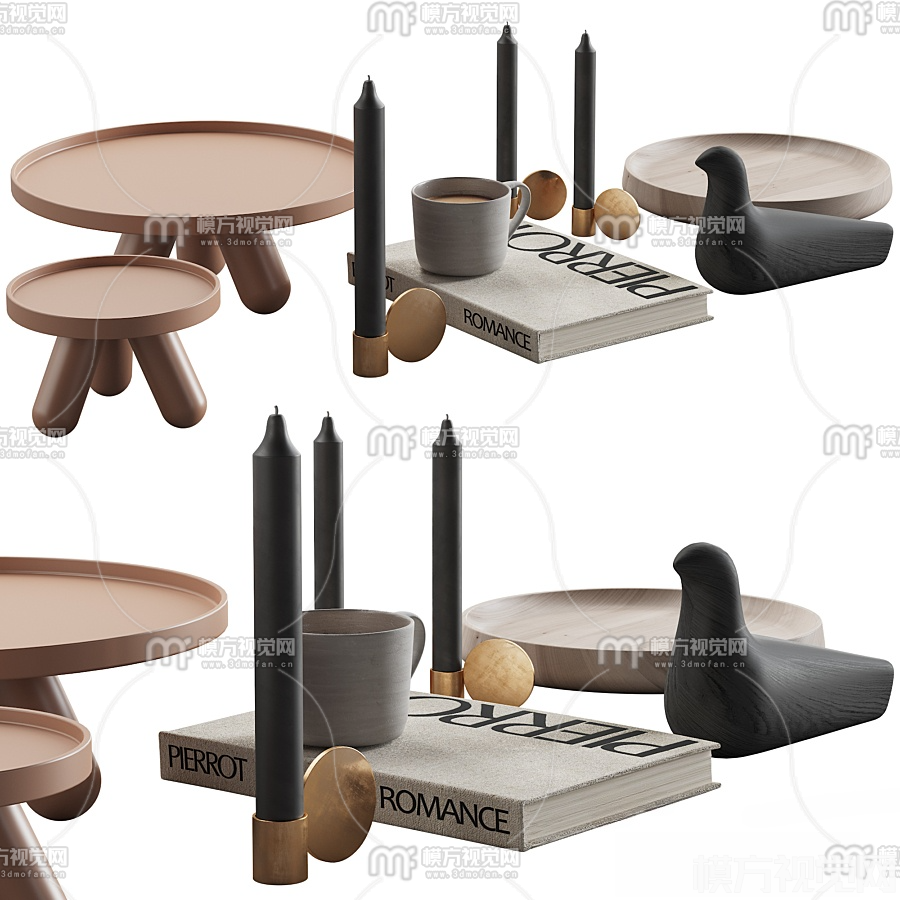 现代书籍蜡烛雕塑摆件3D模型(ID:0017936)