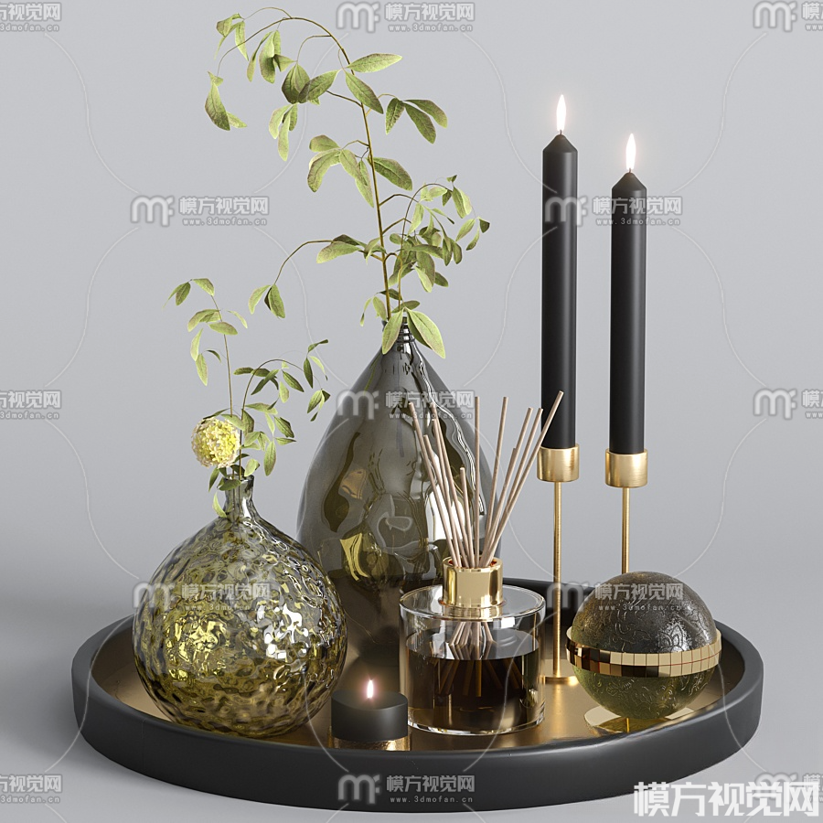 现代轻奢玻璃花瓶摆件3D模型(ID:0017957)