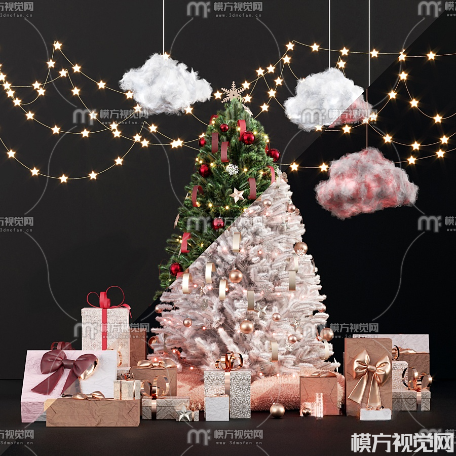 现代圣诞树礼物盒摆件3D模型(ID:0017968)