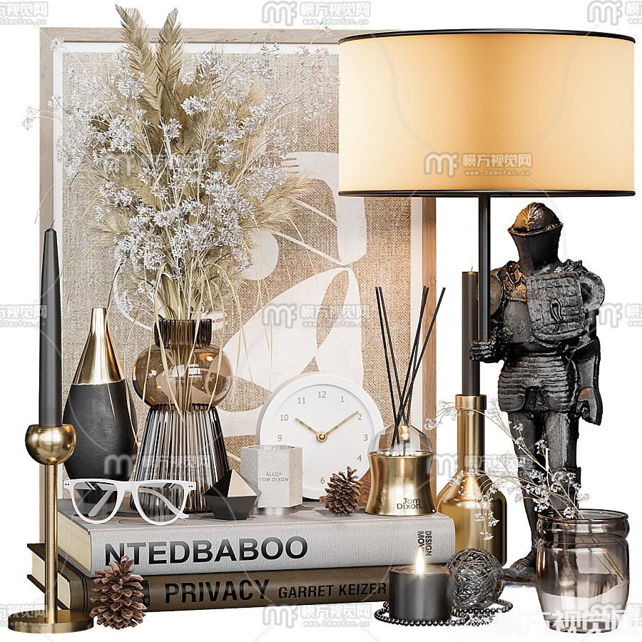 现代台灯花瓶书籍摆件3D模型(ID:0017976)
