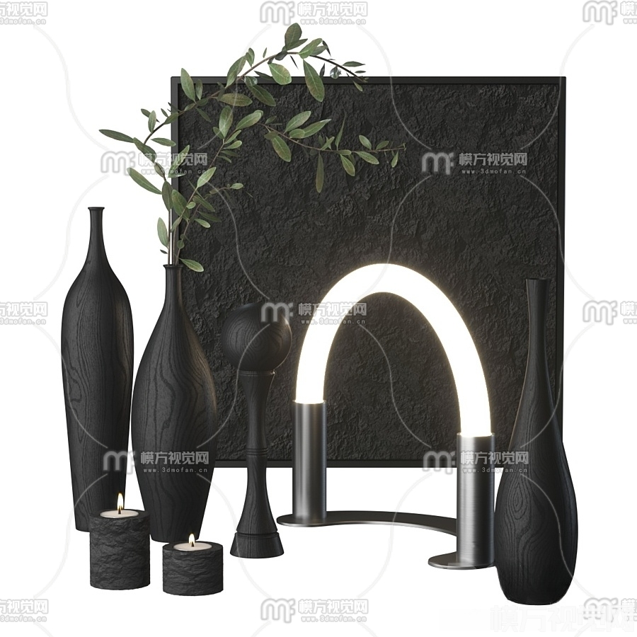 现代花艺 蜡烛 台灯饰品摆件3D模型(ID:0018119)