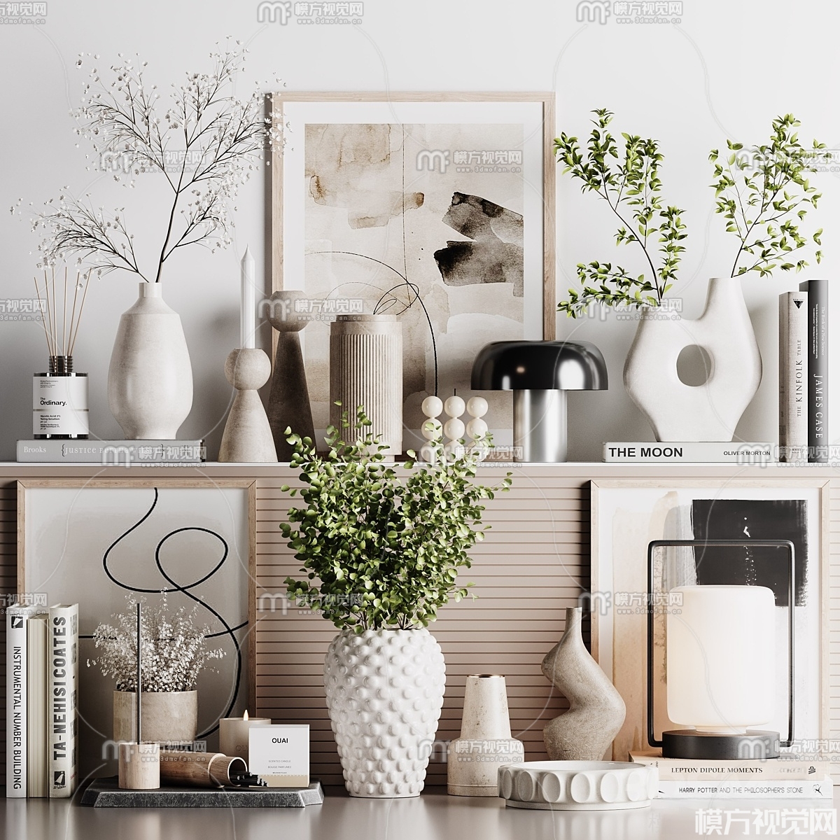 书籍挂画 花瓶花艺 陶瓷摆件3D模型(ID:0018193)