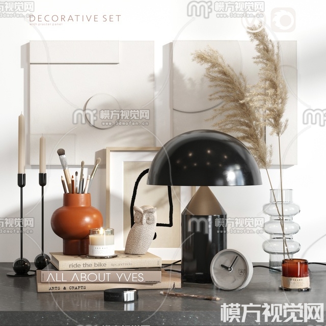 现代台灯烛台书籍摆件3D模型(ID:0018194)