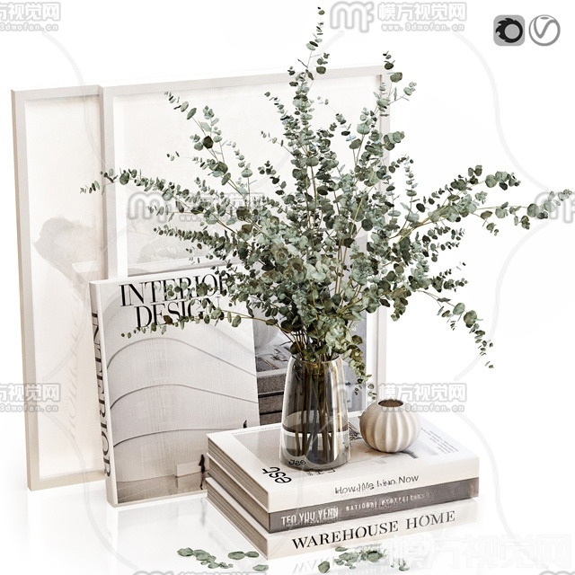 现代绿植花瓶 书籍摆件3D模型(ID:0018196)