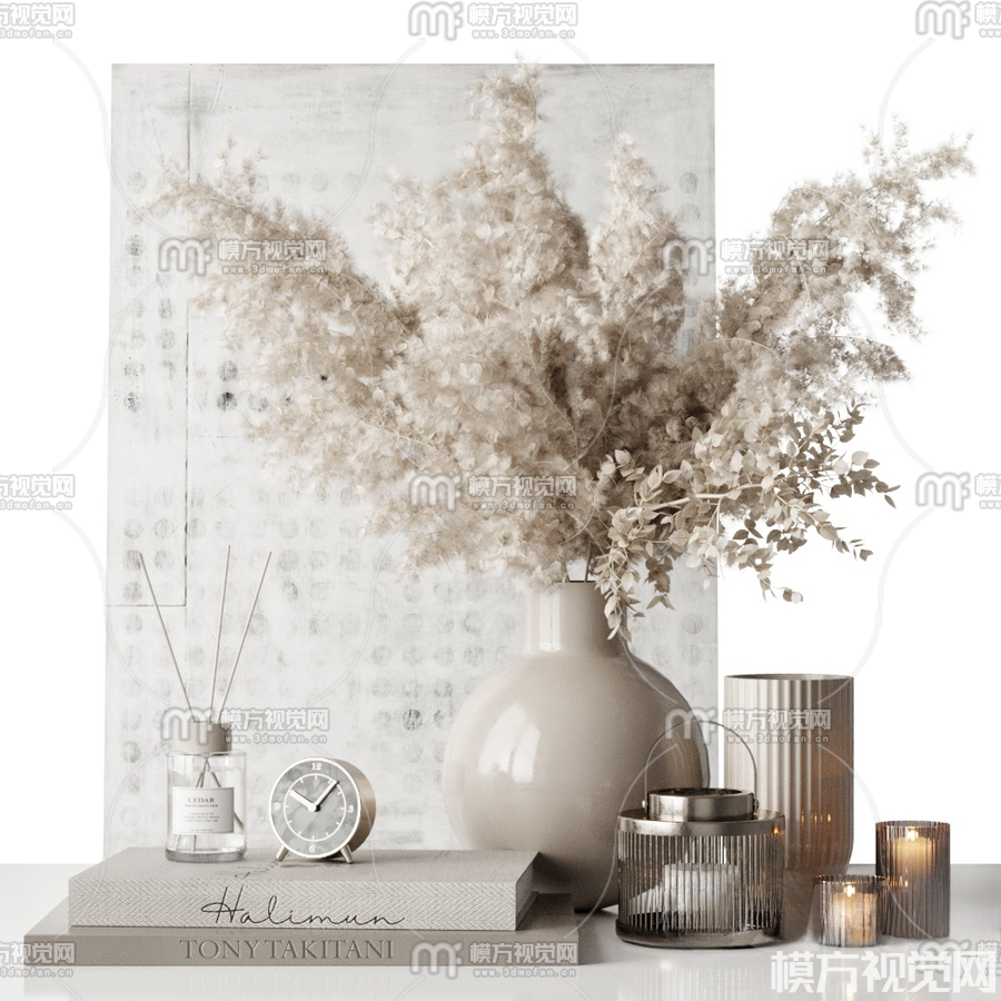 现代书籍花瓶香烛摆件3D模型(ID:0018199)