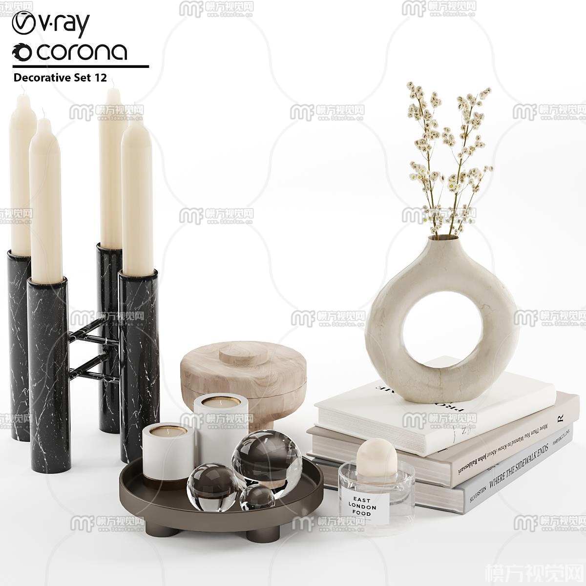 桌面摆件 书籍 烛台 器皿3D模型(ID:0018228)