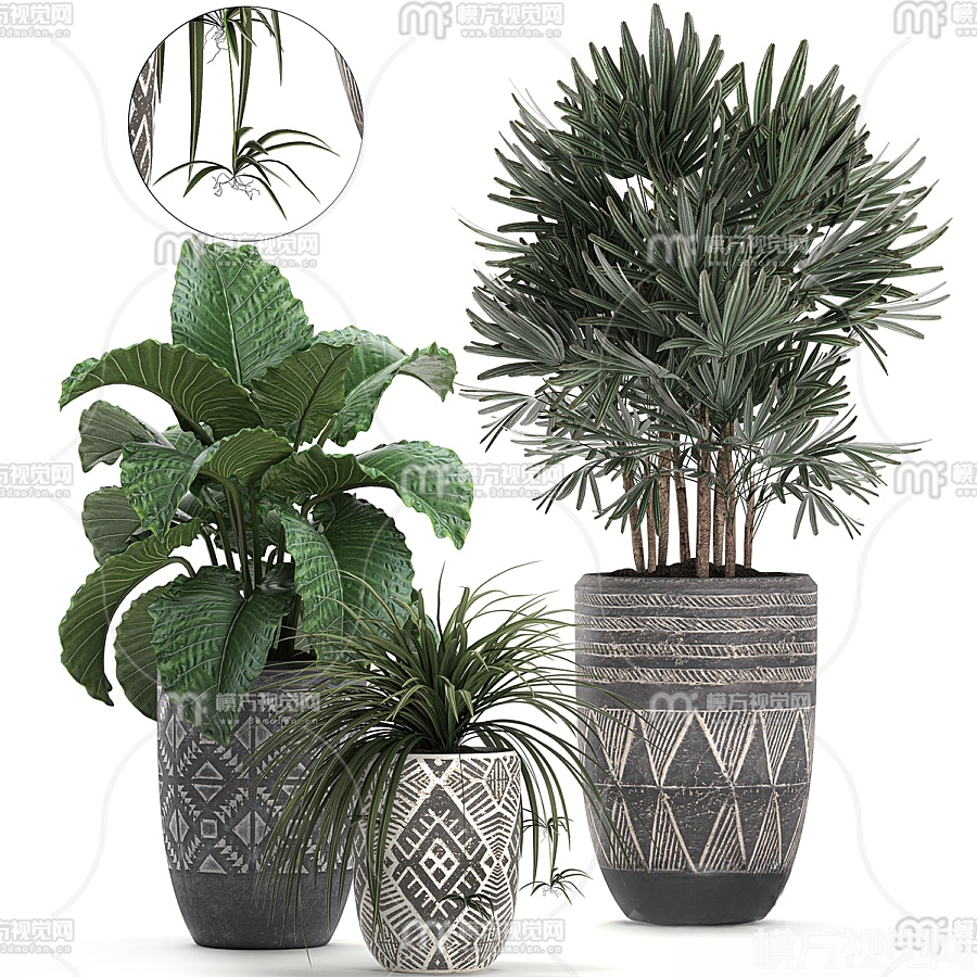 现代绿植盆栽3D模型(ID:0018233)