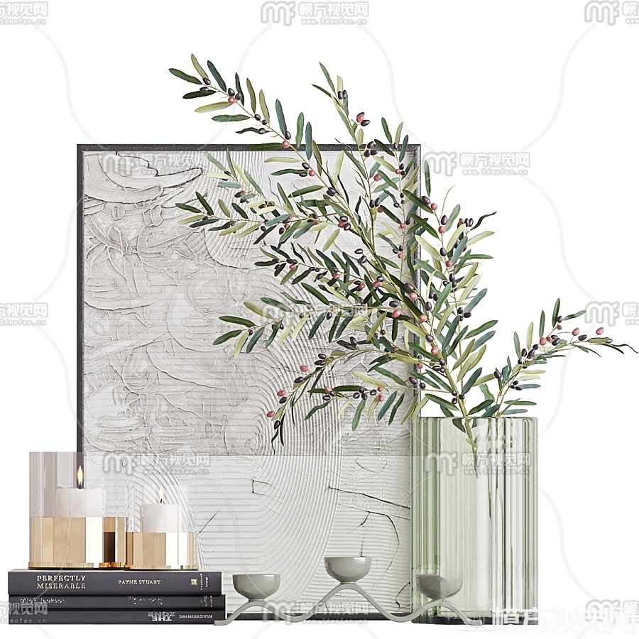 现代花瓶书籍饰品摆件3D模型(ID:0018260)