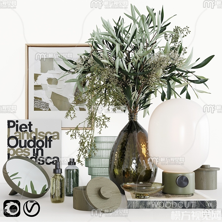 现代花瓶 台灯装饰画饰品摆件3D模型(ID:0018261)