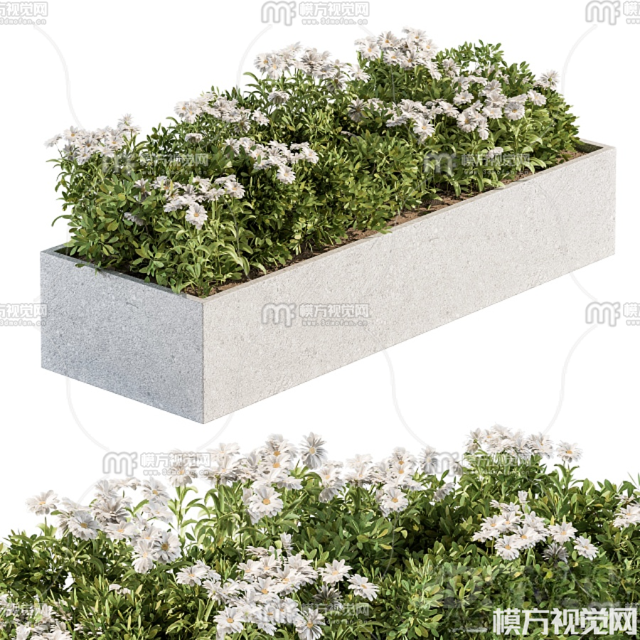 现代户外花圃花坛盆栽3D模型(ID:0018320)