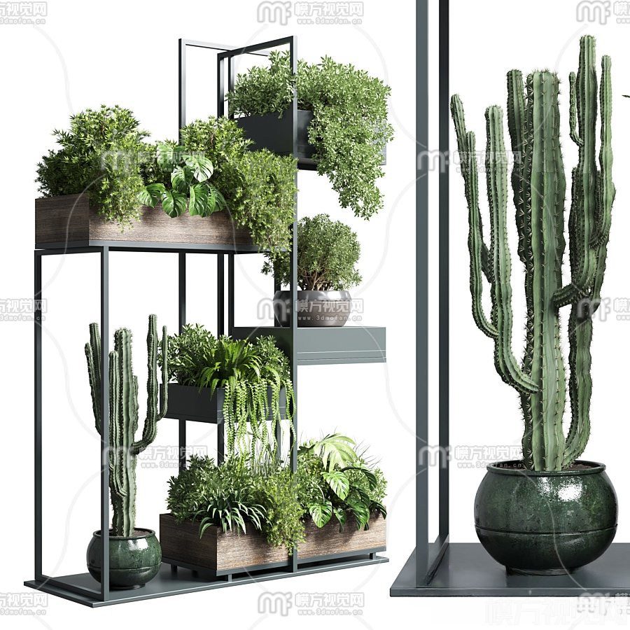 现代植物架绿植盆栽组合3D模型(ID:0018403)