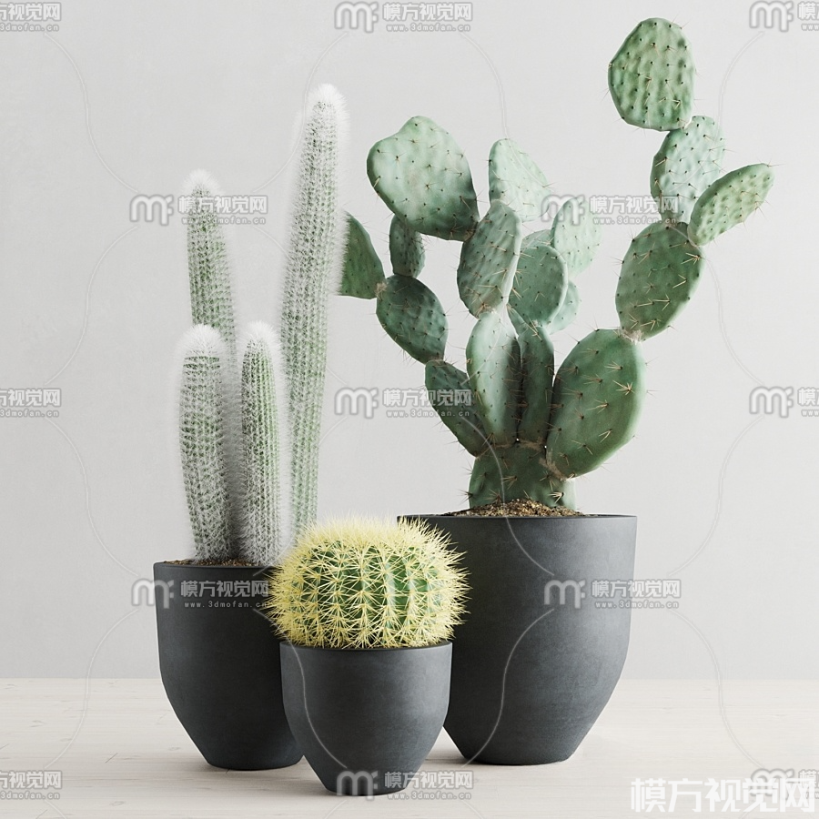 现代仙人掌绿植盆栽3D模型(ID:0018416)