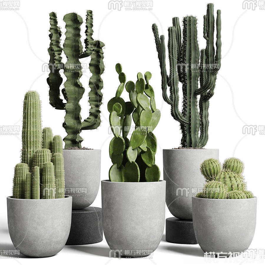 现代仙人掌绿植盆栽3D模型(ID:0018417)