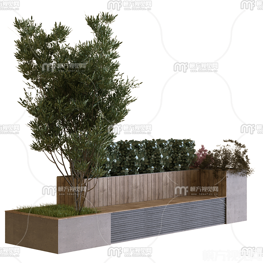 现代户外花坛绿植公共椅3D模型(ID:0018516)
