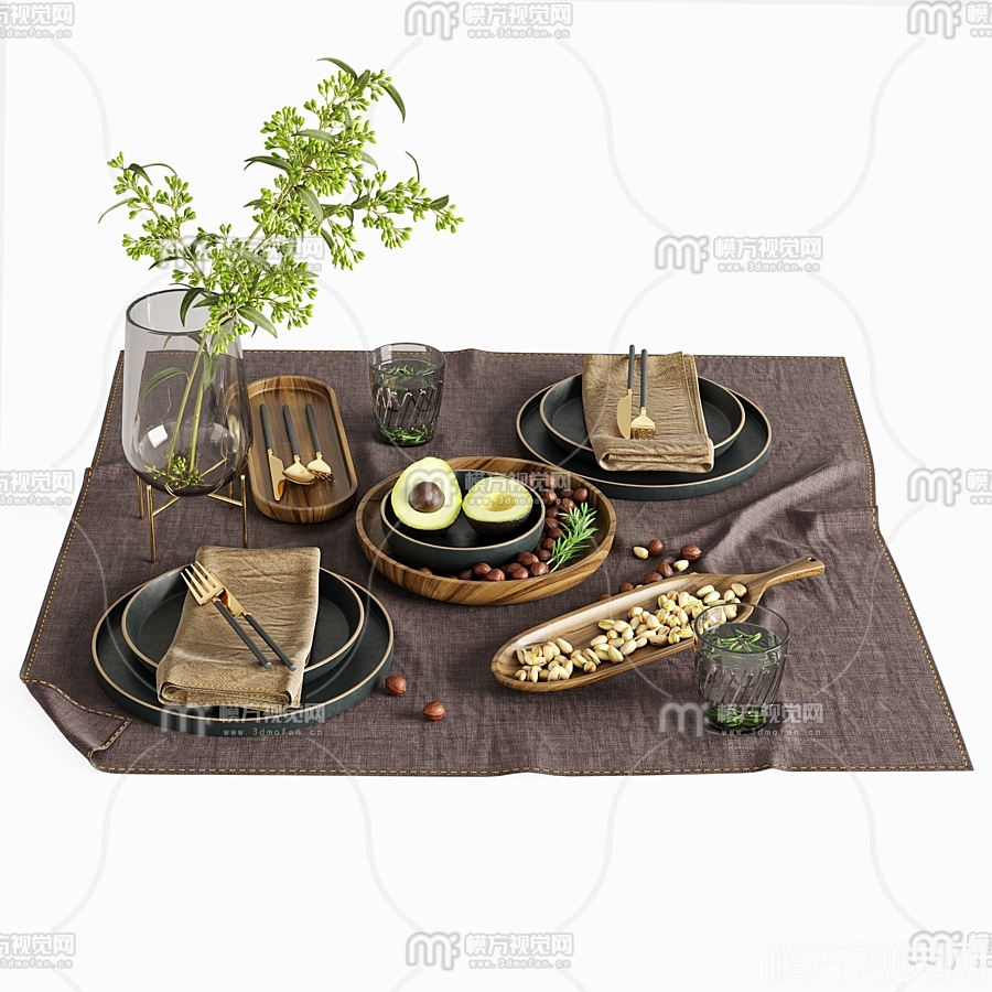 现代餐具摆件3D模型(ID:0018582)