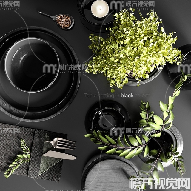 现代餐具摆件3D模型(ID:0018586)