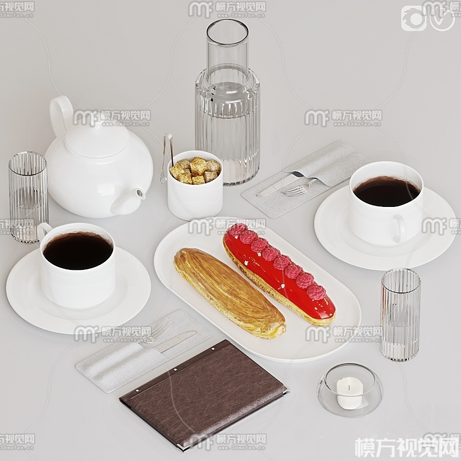餐具 咖啡 面包 水壶3D模型(ID:0018625)