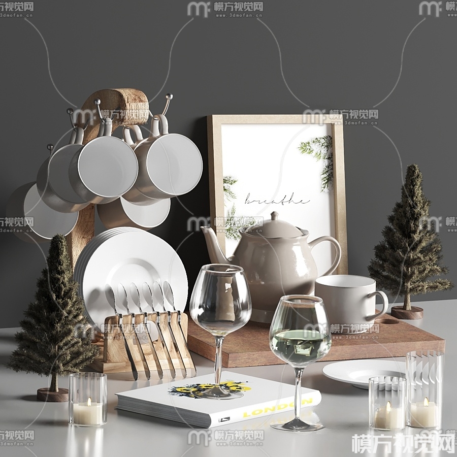 现代餐具 茶壶砧板3D模型(ID:0018627)