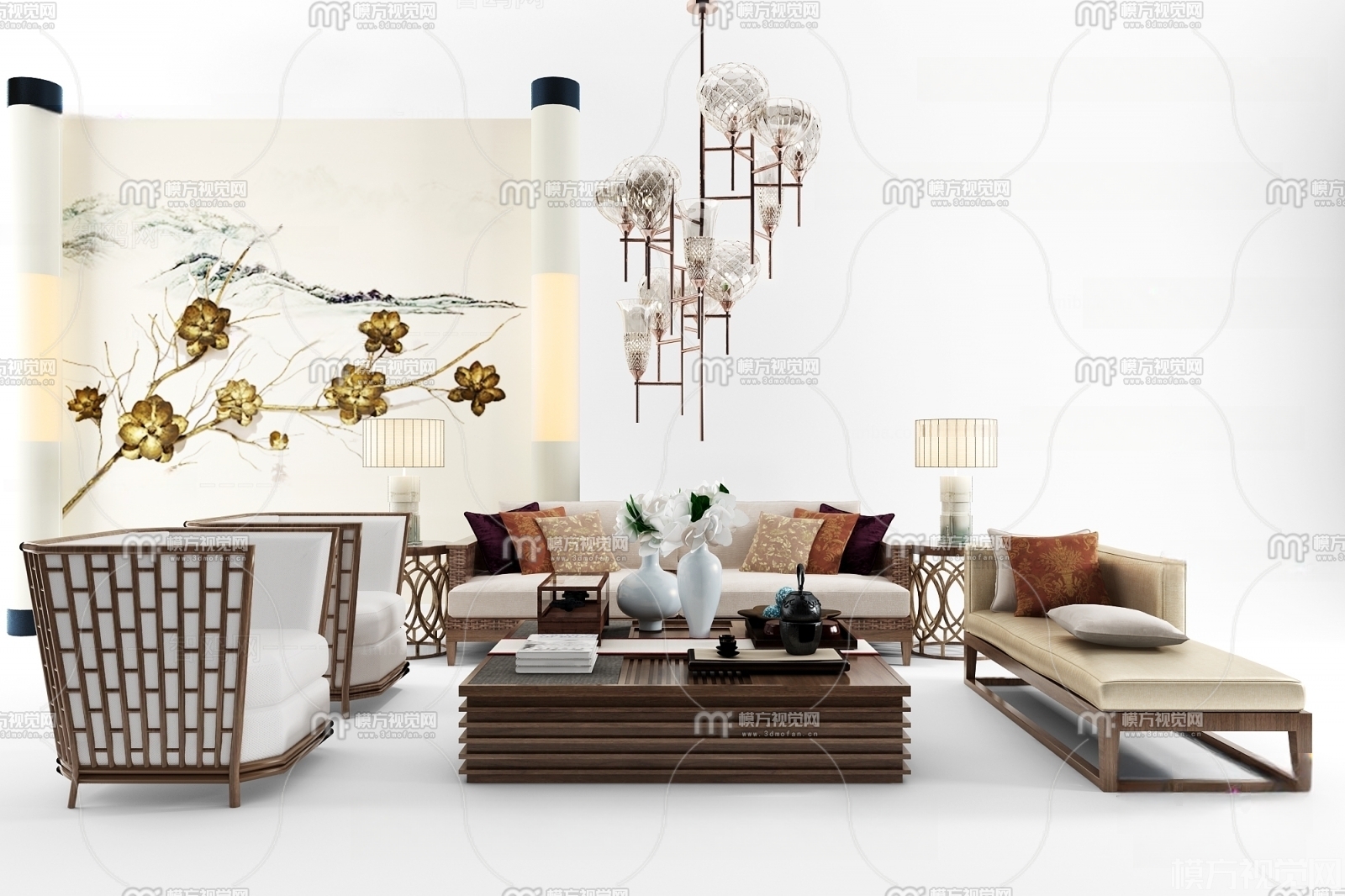 新中式沙发茶几组合3D模型(ID:0001865)