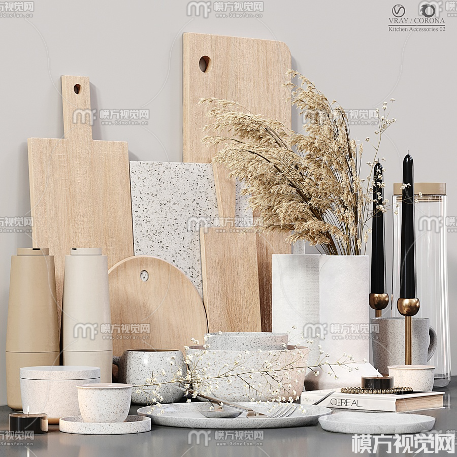 现代砧板碗碟厨房器具3D模型(ID:0018704)
