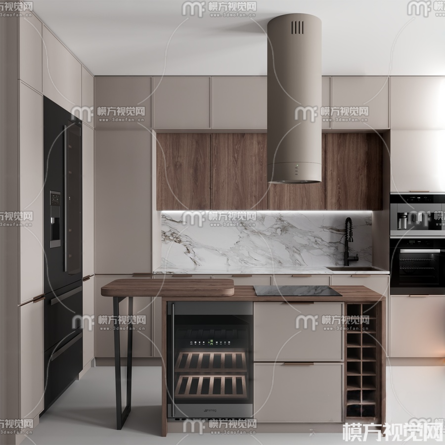 现代橱柜 中倒台3D模型(ID:0018716)