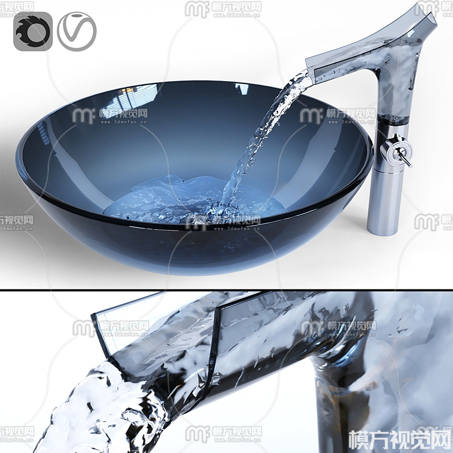 玻璃台盆和水龙头3D模型(ID:0018758)