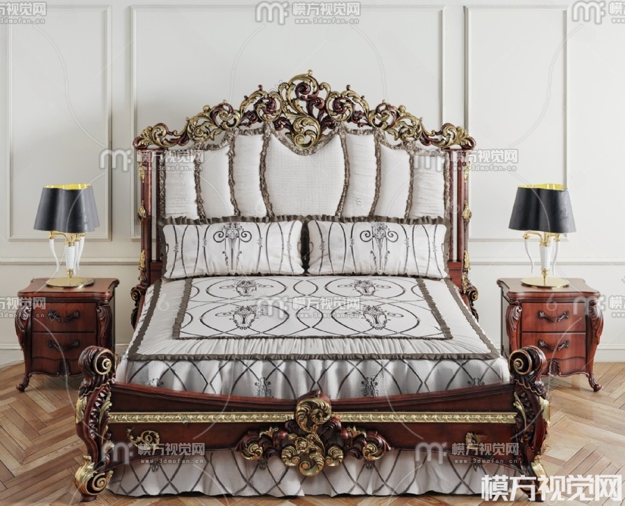 美式双人床3D模型(ID:0001877)