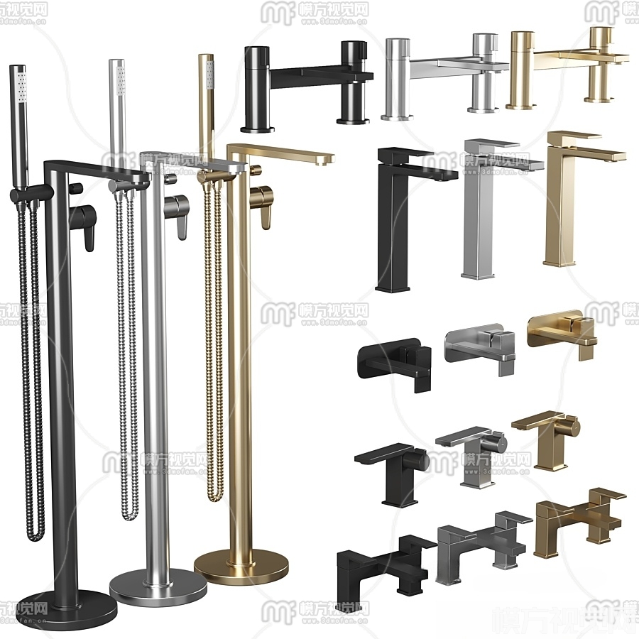现代不锈钢水龙头花洒3D模型(ID:0018945)