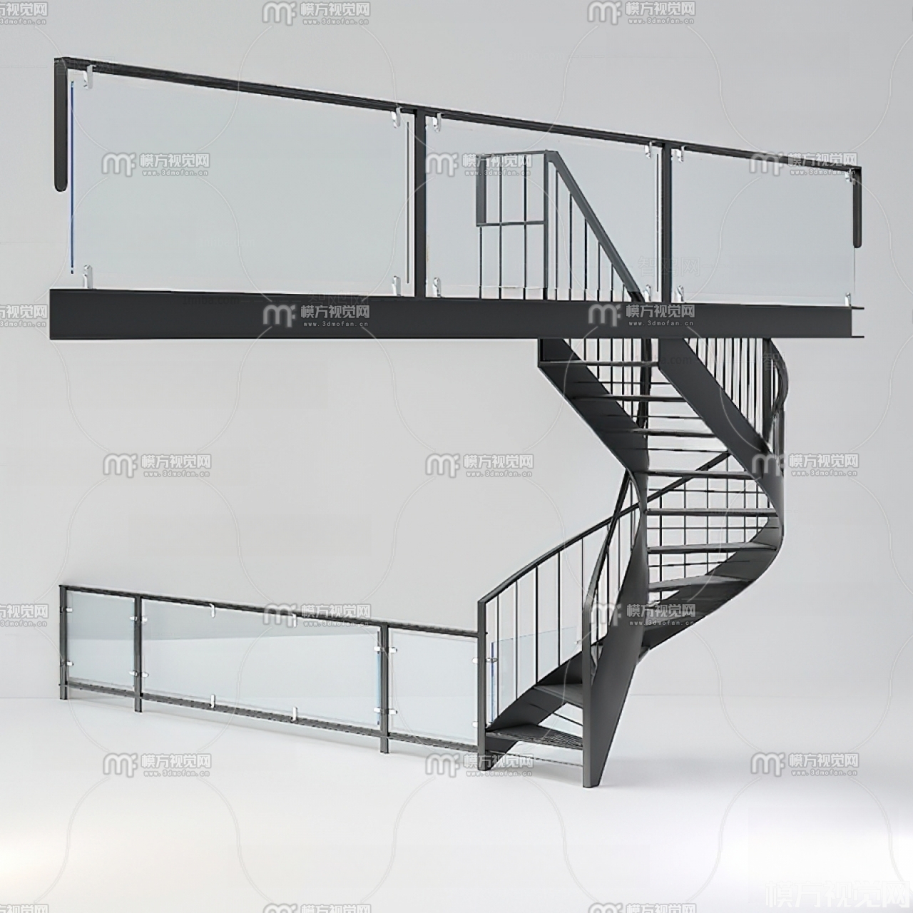 现代旋转楼梯栏杆3D模型(ID:0001897)