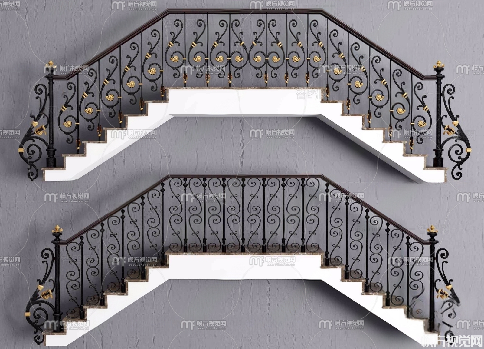 简欧铁艺楼梯栏杆3D模型(ID:0001899)