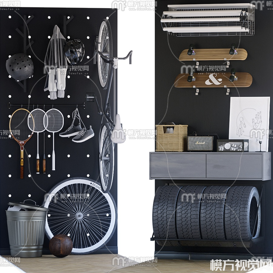 现代运动器材组合3D模型(ID:0019033)