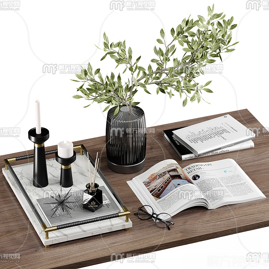 现代书籍花瓶饰品摆件3D模型(ID:0019188)