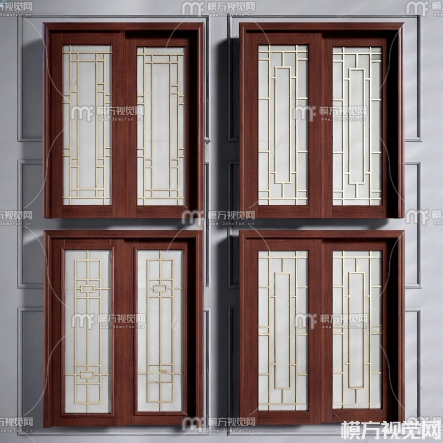 新中式推拉门3D模型(ID:0001934)