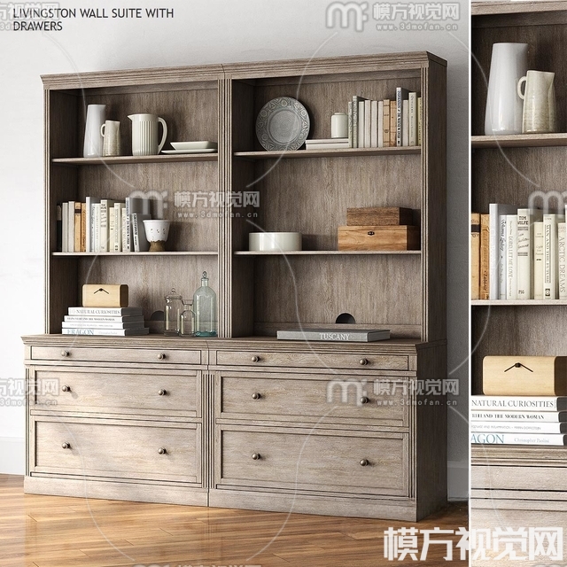 美式书柜3D模型(ID:0019425)