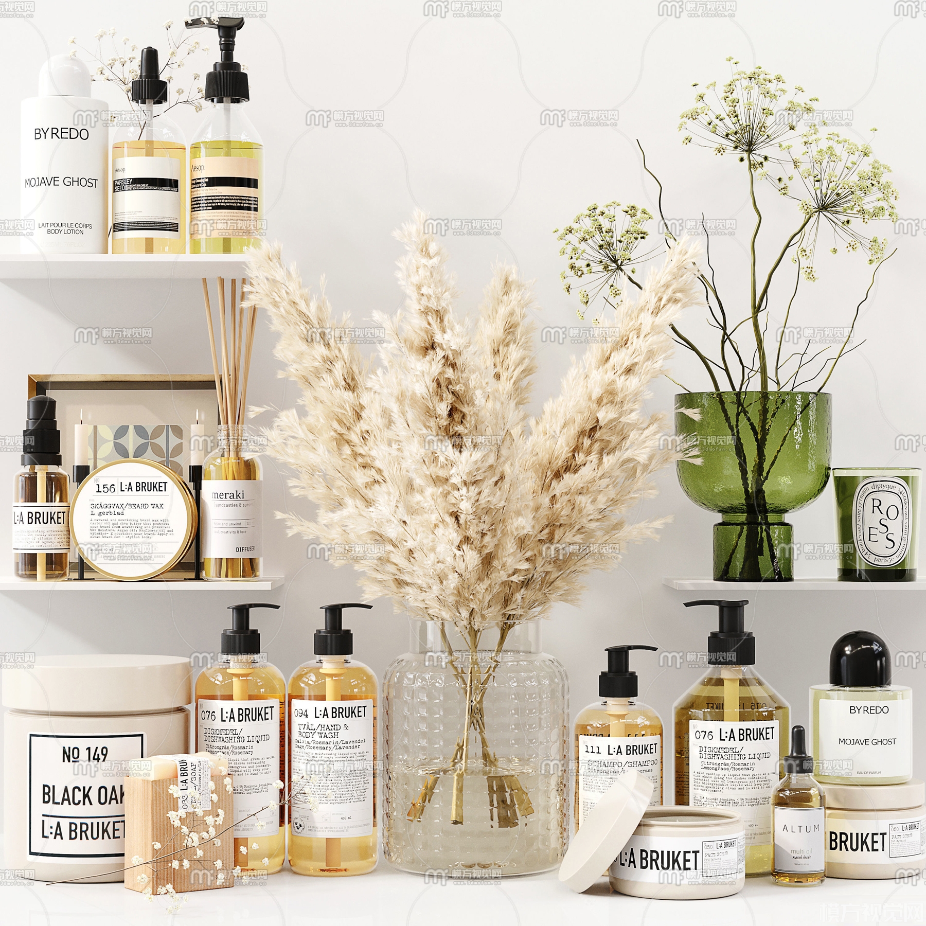 现代卫浴洗涤用品花瓶摆件组合3D模型(ID:0019478)