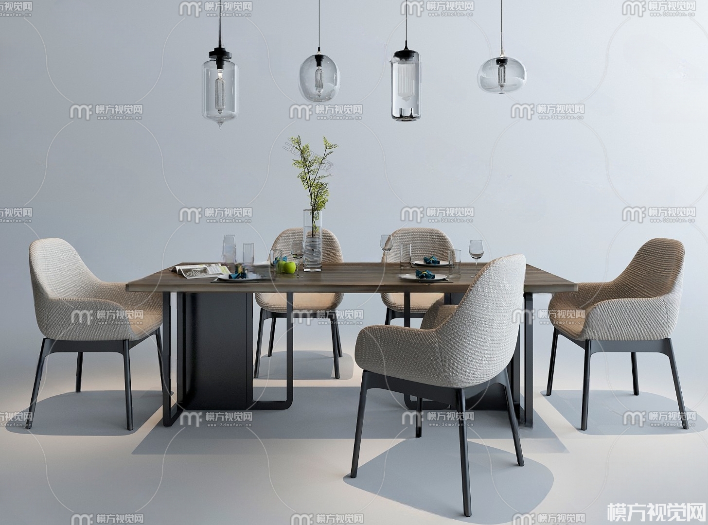 现代餐桌椅组合3D模型(ID:0001957)