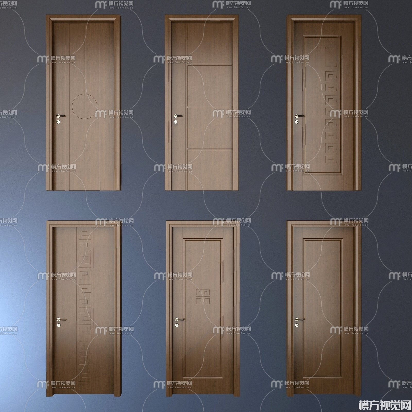 新中式木门组合3D模型(ID:0001964)