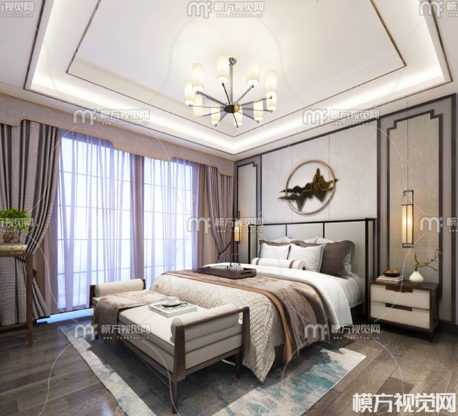 新中式卧室3D模型(ID:0001978)