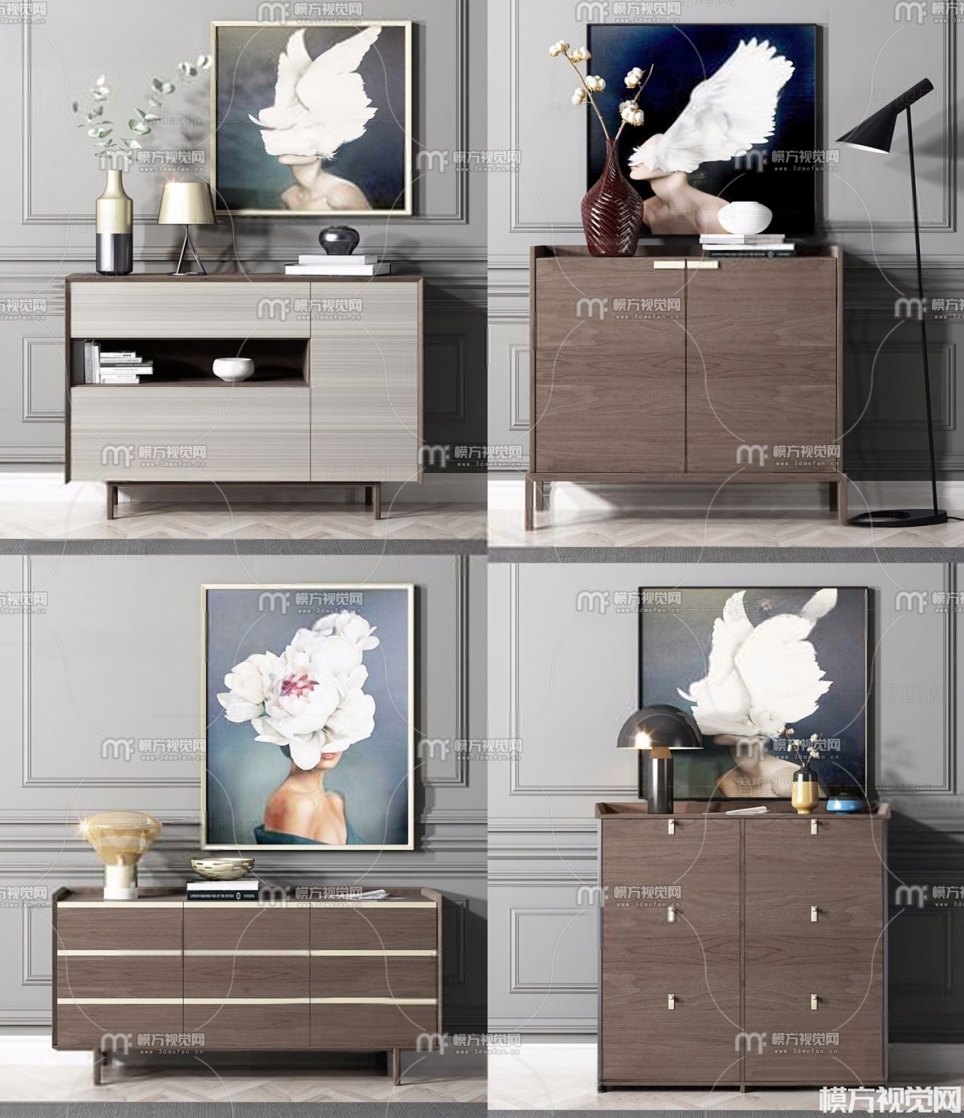 现代边柜 装饰柜组合3D模型(ID:0001994)
