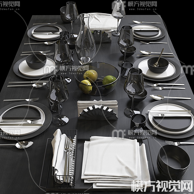 现代餐具摆件3D模型(ID:0019966)