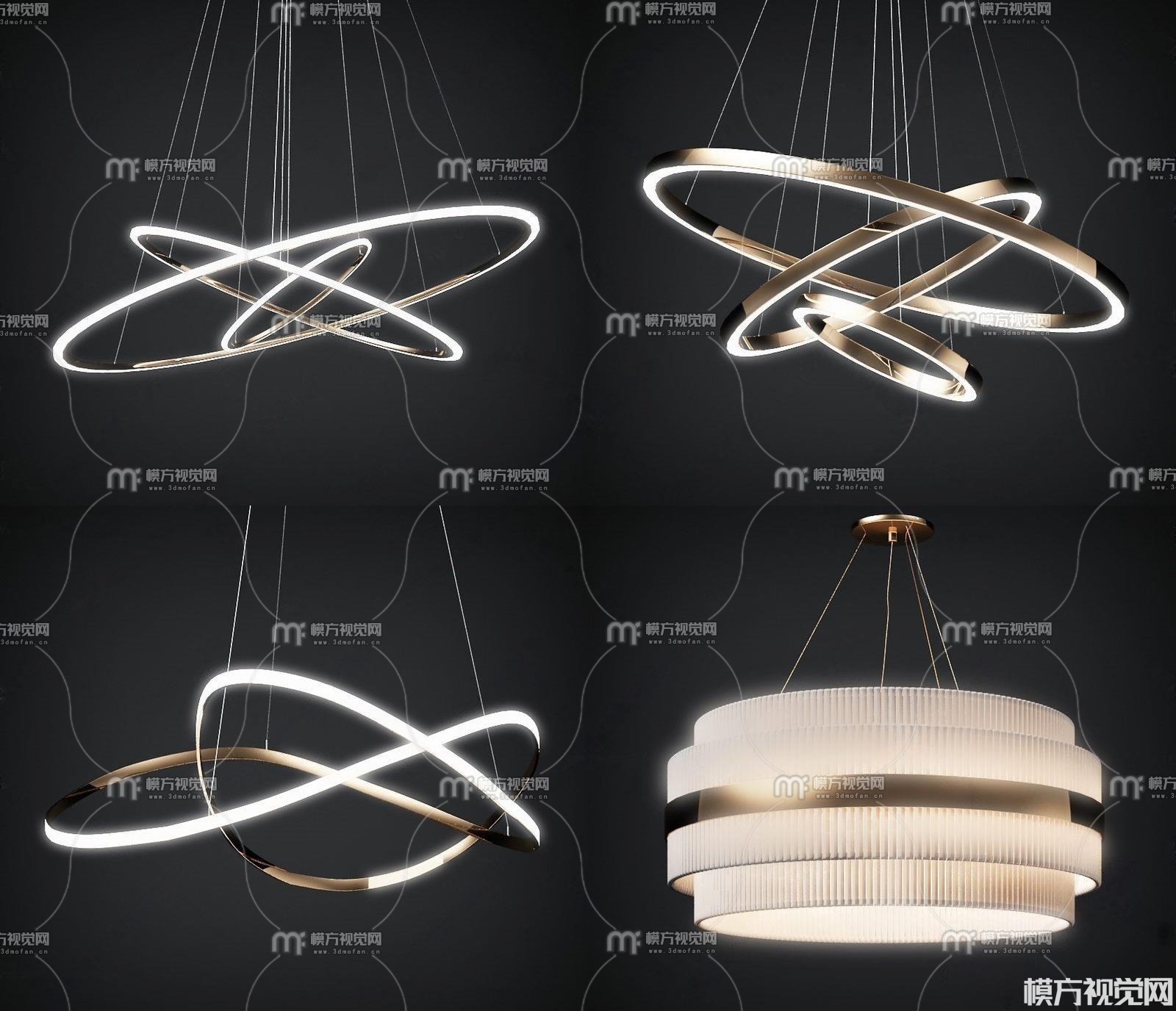 现代金属吊灯组合3D模型(ID:0000200)