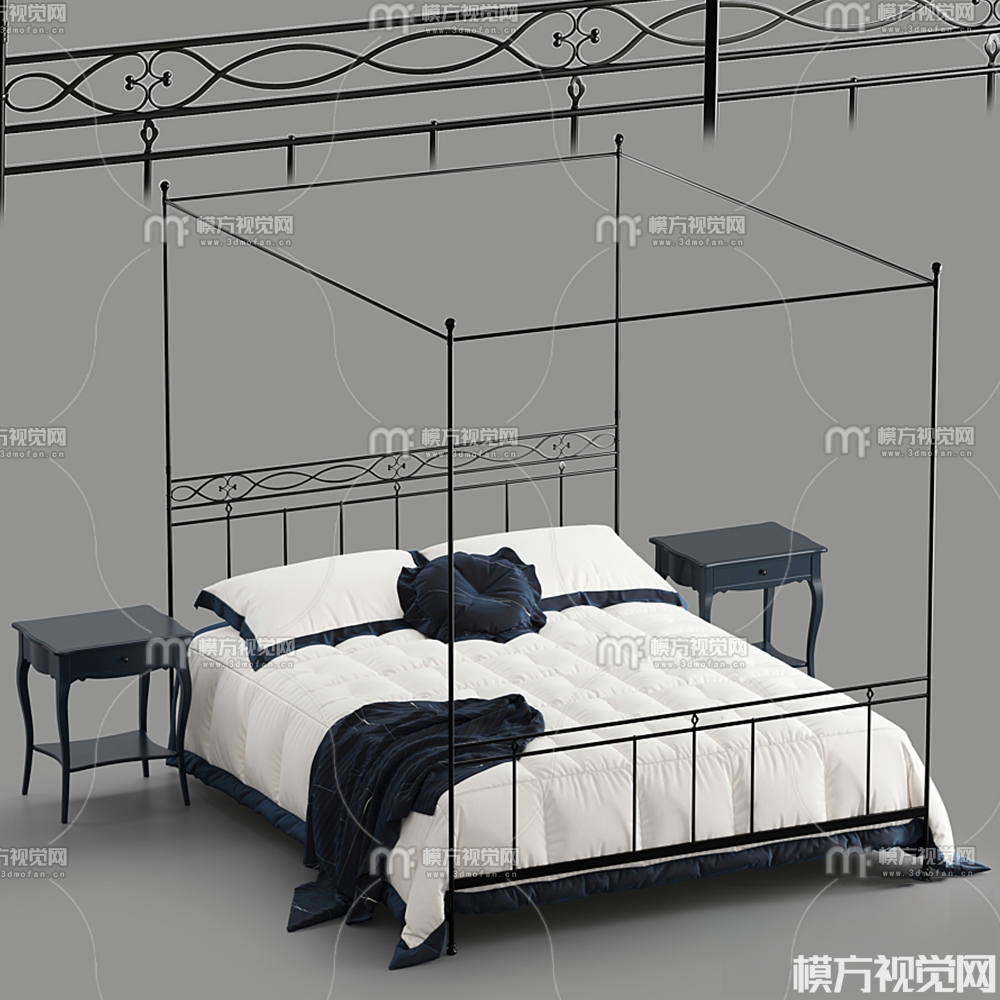 现代布艺双人床3D模型(ID:0020074)