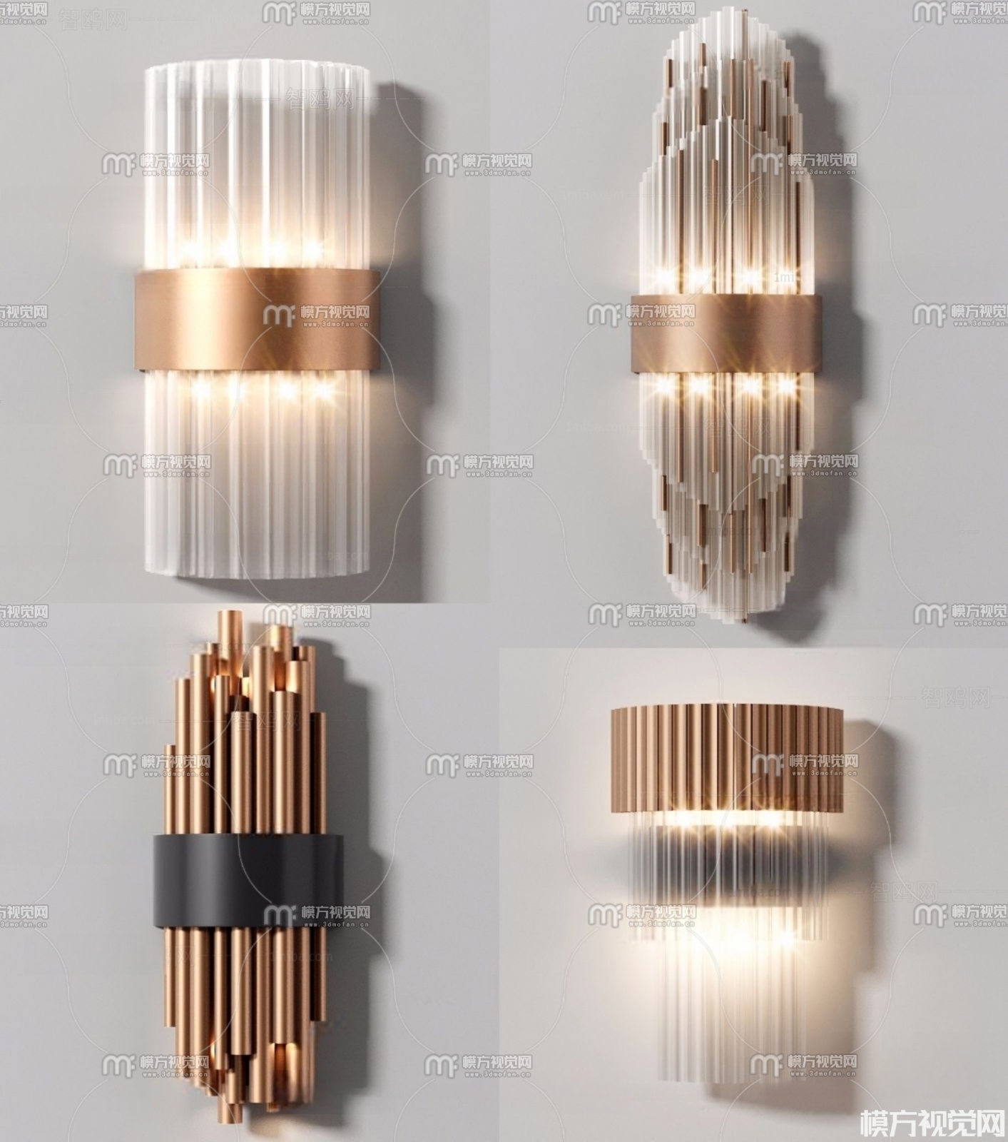 现代轻奢壁灯组合3D模型(ID:0002016)
