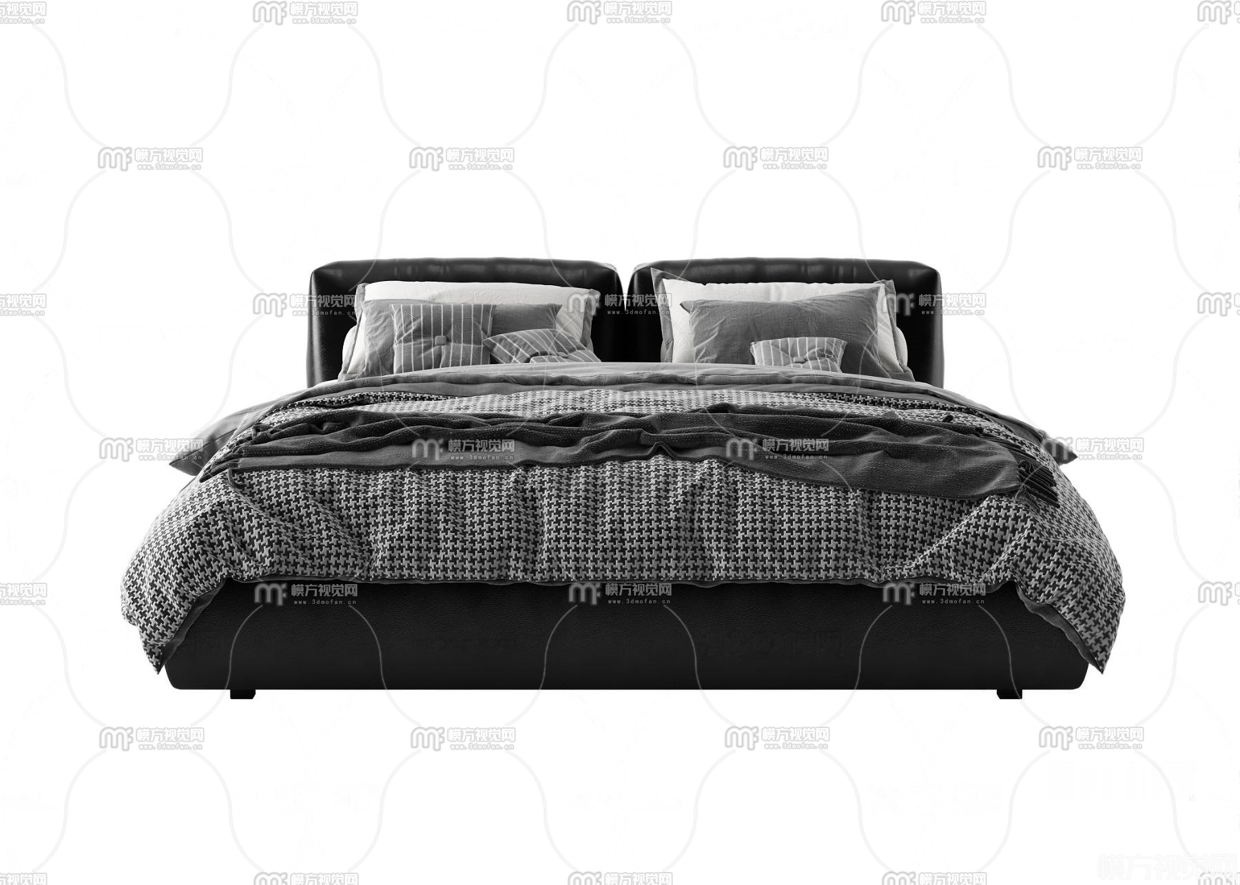 现代布艺双人床3D模型(ID:0020167)